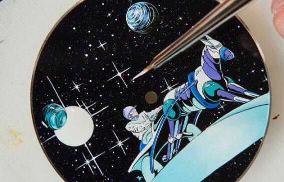 砂金石或粉红卵白石表盘上的微型绘画,为爱马仕Arceau腕表提供了新的创意维度。这种艺术需要极度细心、稳健笔触和敏锐的色彩感,方能付与微妙怪异、对比鲜明的细节以生命。先是细腻的多层微绘、接着画笔涂抹、末了热炉干燥,太空赛马的形象跃然纸上。