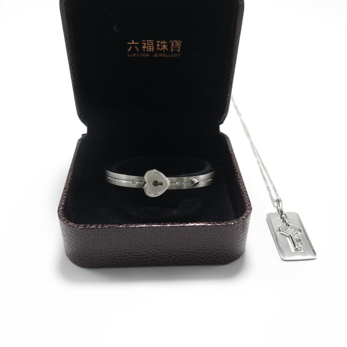 六福珠宝限量版冲上云霄2钥匙心锁手镯吊坠情侣套装